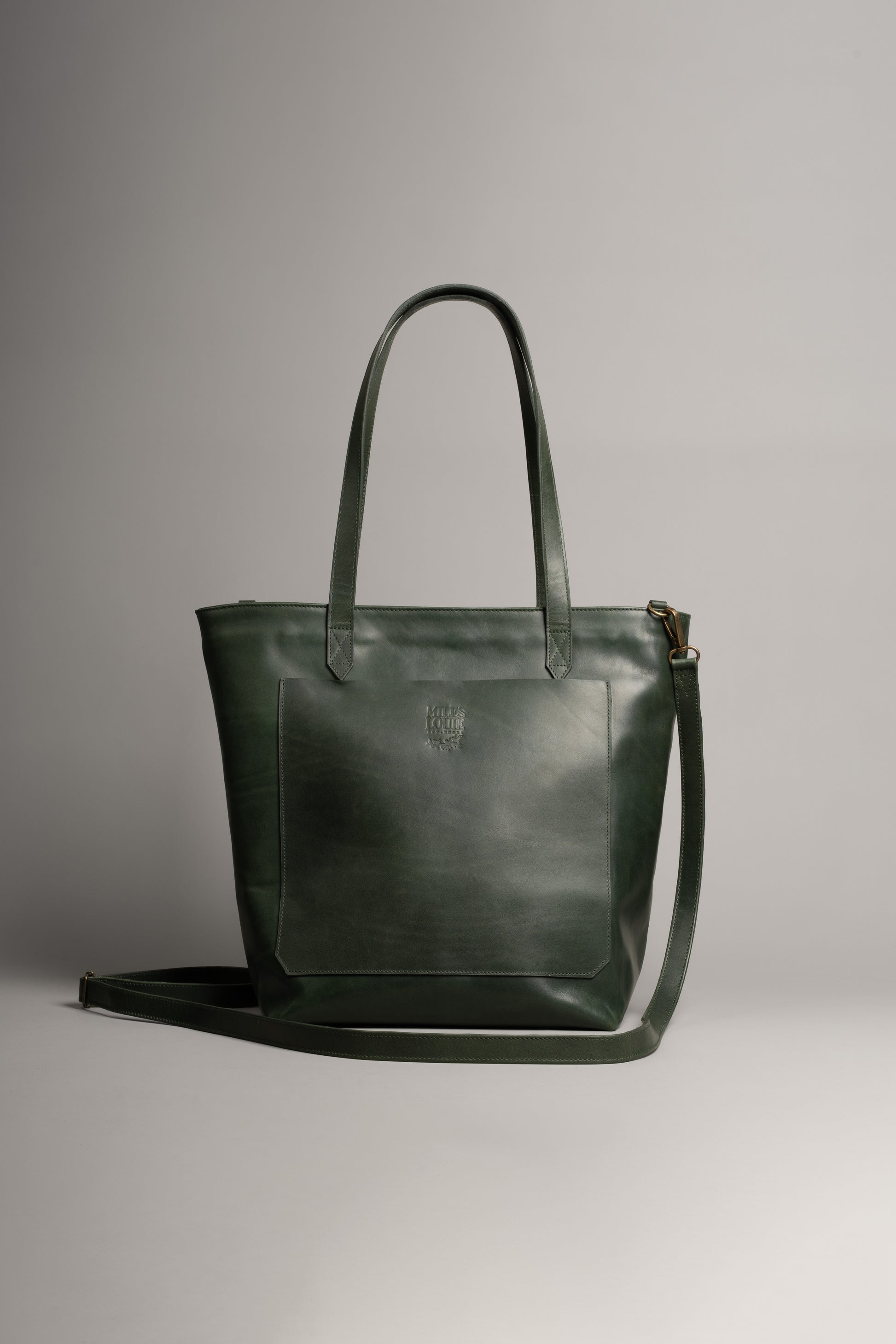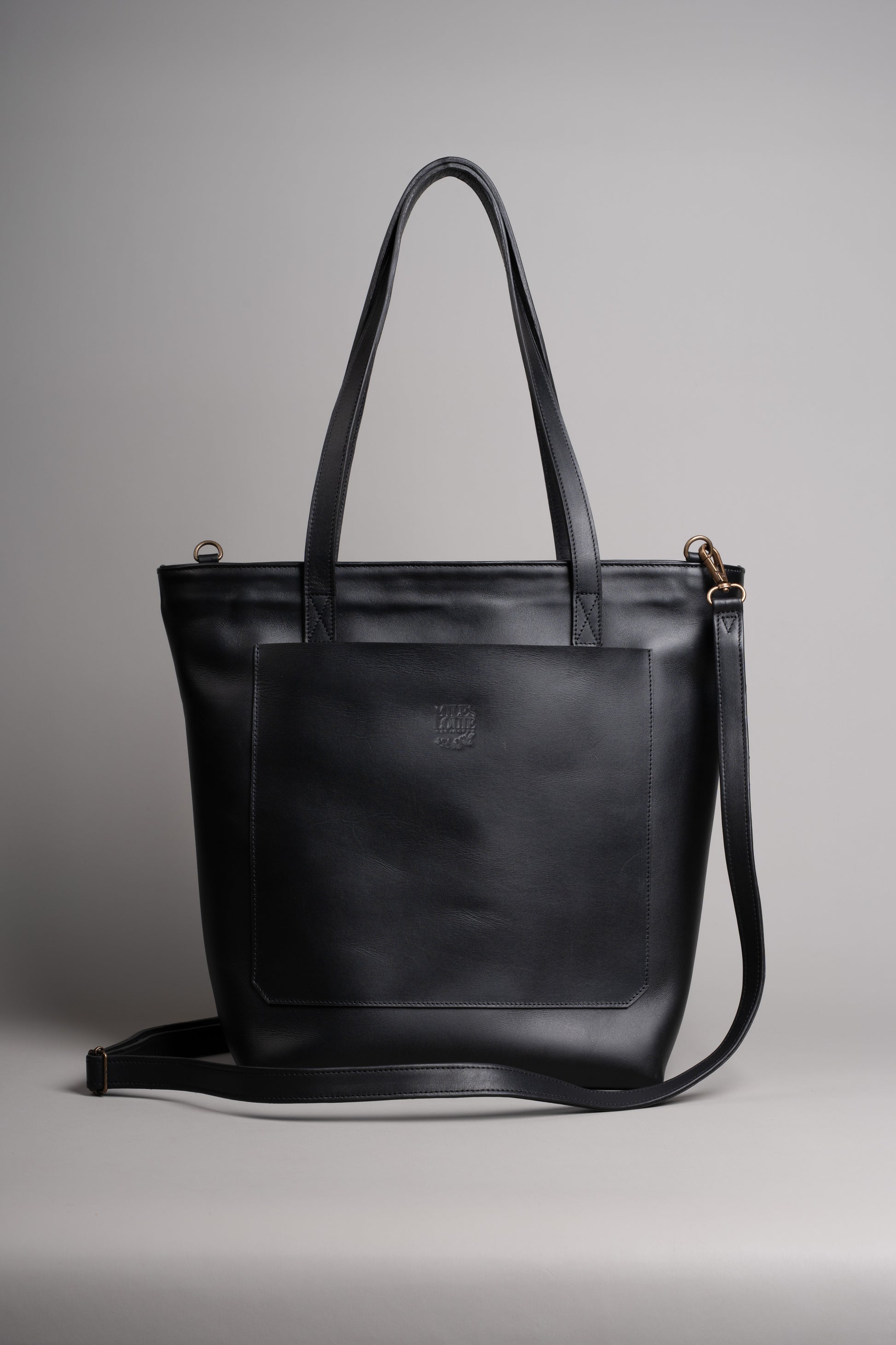 Clásico bolso estilo tote de piel confeccionado a mano. Ideal para uso diario, con amplio espacio para esenciales como cartera, llaves, teléfono, laptop (MacBook Pro 13" o similar), tableta, documentos y más. Cuenta con bolso exterior frontal, cierre principal con zipper, forro suave de terciopelo, asas reforzadas para llevar al hombro y bolsillo interno para accesorios pequeños. Incluye correa ajustable y removible.