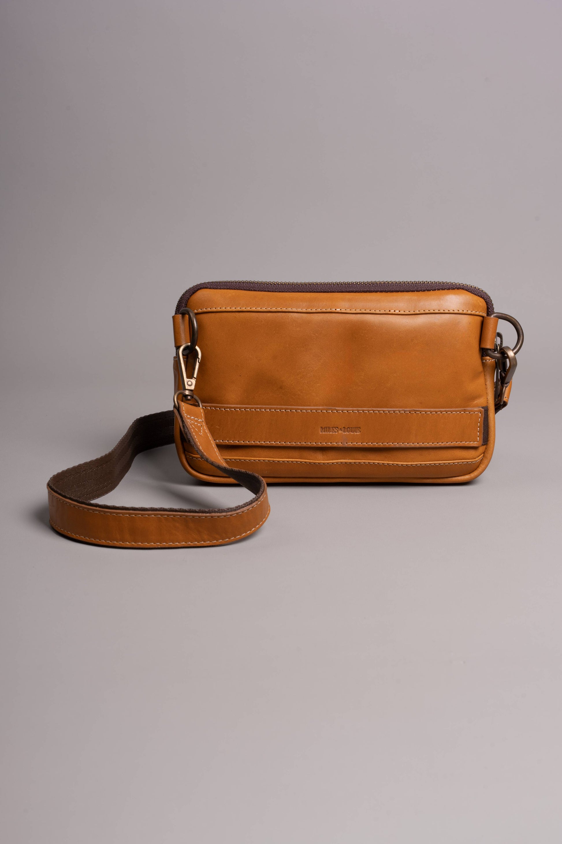 The belt is removable and adjustable (28” - 38”), allowing it to be worn comfortably on the hip or crossed over the shoulder.