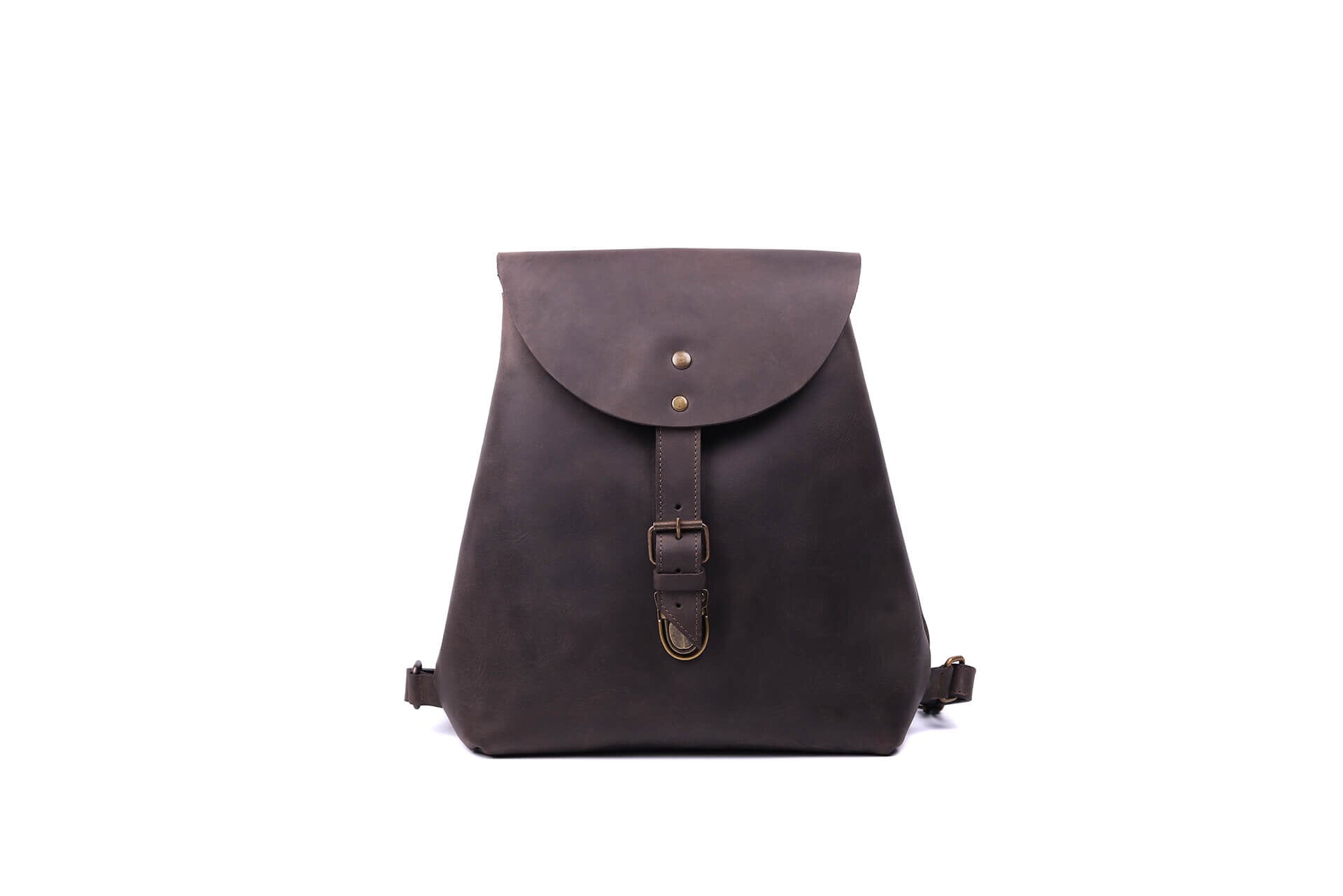 Leather backpack-bag. Perfect for storing basic belongings such as wallet, phone, notebook, tablet and small accessories. Features a soft interior lining, internal pocket with zipper closure. Easy closure with snap and adjustable strap system.